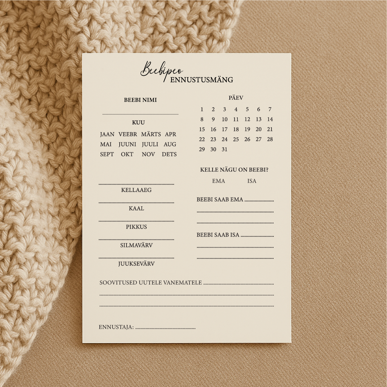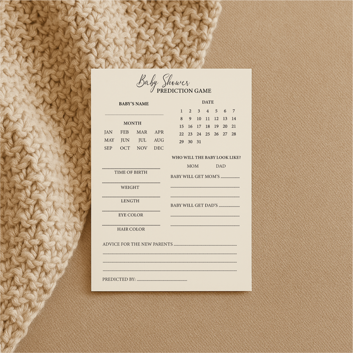 Iga külaline saab endale ennustuskaardi, kuhu nad saavad kirjutada oma ennustused seoses beebi saabumise kuupäeva, pikkuse, kaalu jms. Lisaks sellele on ruumi ka armsate sõnumite ja soovide jaoks tulevastele lapsevanematele.