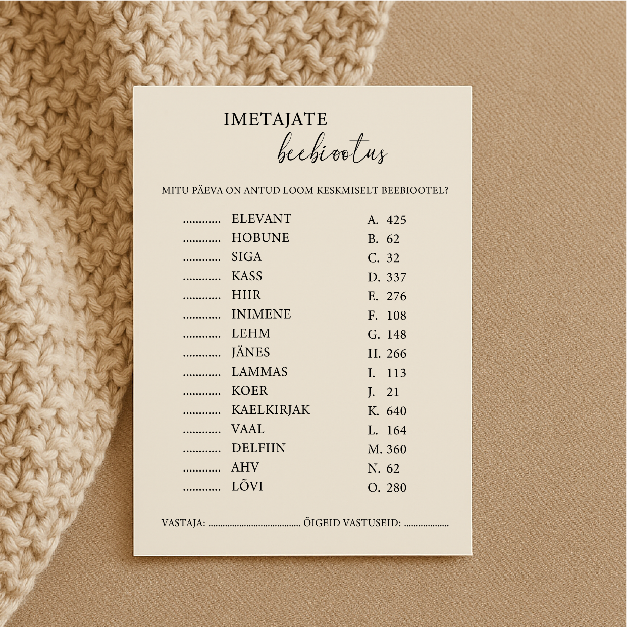 Selleks, et luua erilisi mälestusi koos oma kõige lähedasemate inimeste seltsis, oleme loonud lõbusad ja kaasahaaravad beebipeo mängukaardid, mida koos tulevase emmega koos mängida! Tegelikult ju ongi tähtis ühiselt veedetud aeg ja mälestuste loomine, mida on tulevasel emal hea meenutada ka vanaduspõlves.