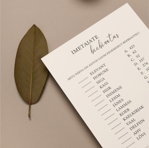 Selleks, et luua erilisi mälestusi koos oma kõige lähedasemate inimeste seltsis, oleme loonud lõbusad ja kaasahaaravad beebipeo mängukaardid, mida koos tulevase emmega koos mängida! Tegelikult ju ongi tähtis ühiselt veedetud aeg ja mälestuste loomine, mida on tulevasel emal hea meenutada ka vanaduspõlves.