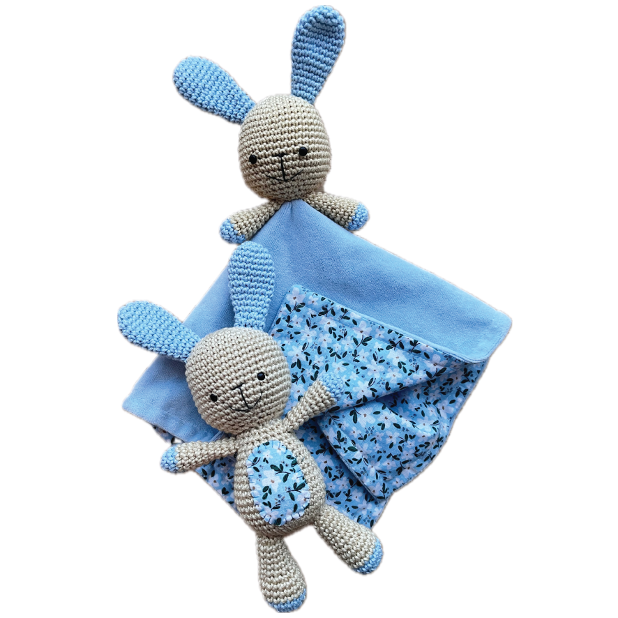 Meie käsitööna valmistatud kaisukomplekt koosneb pehmest kaisutekist ja heegeldatud jänkust, pakkudes lapsele turvatunnet ja hellust igal hetkel. See on ideaalne kaaslane nii unetundideks kui ka lohutuseks uutes ja põnevates olukordades.