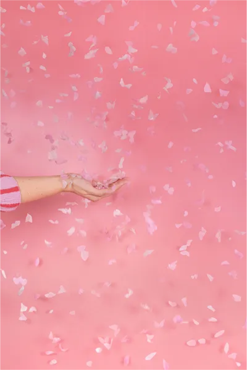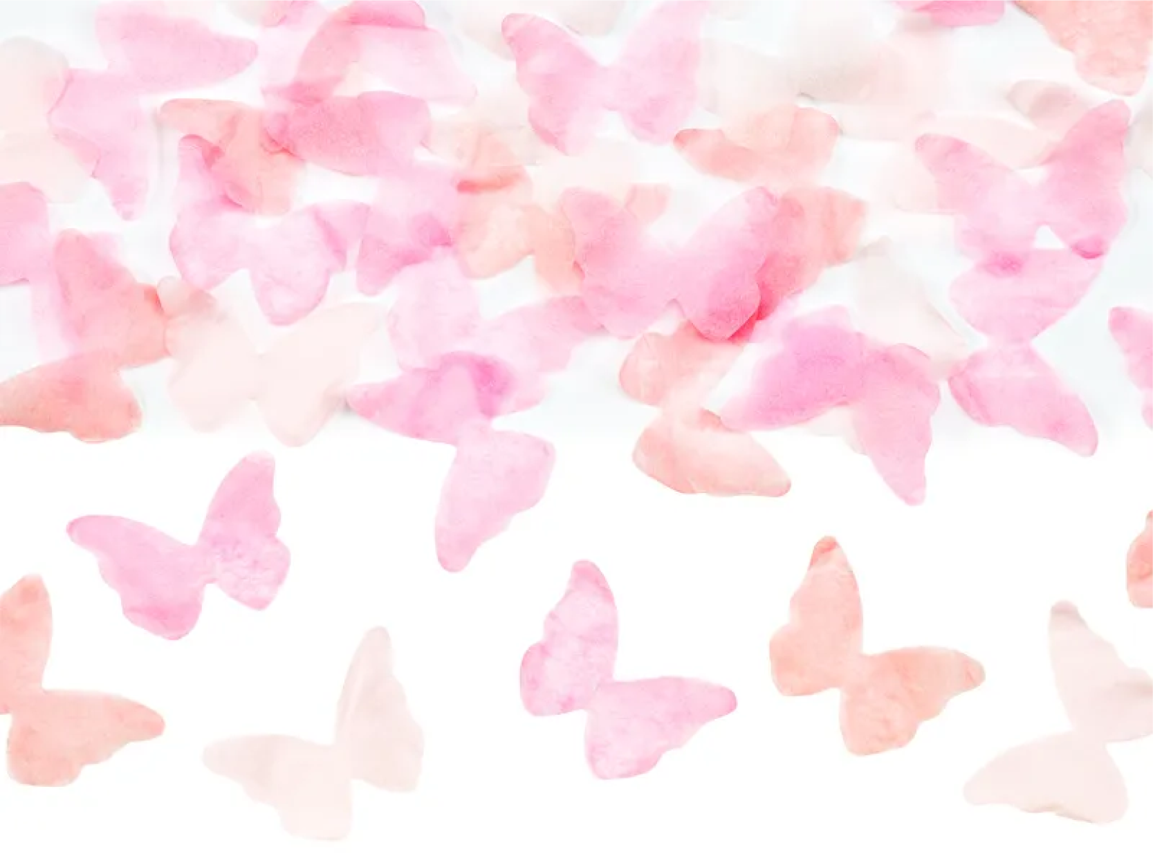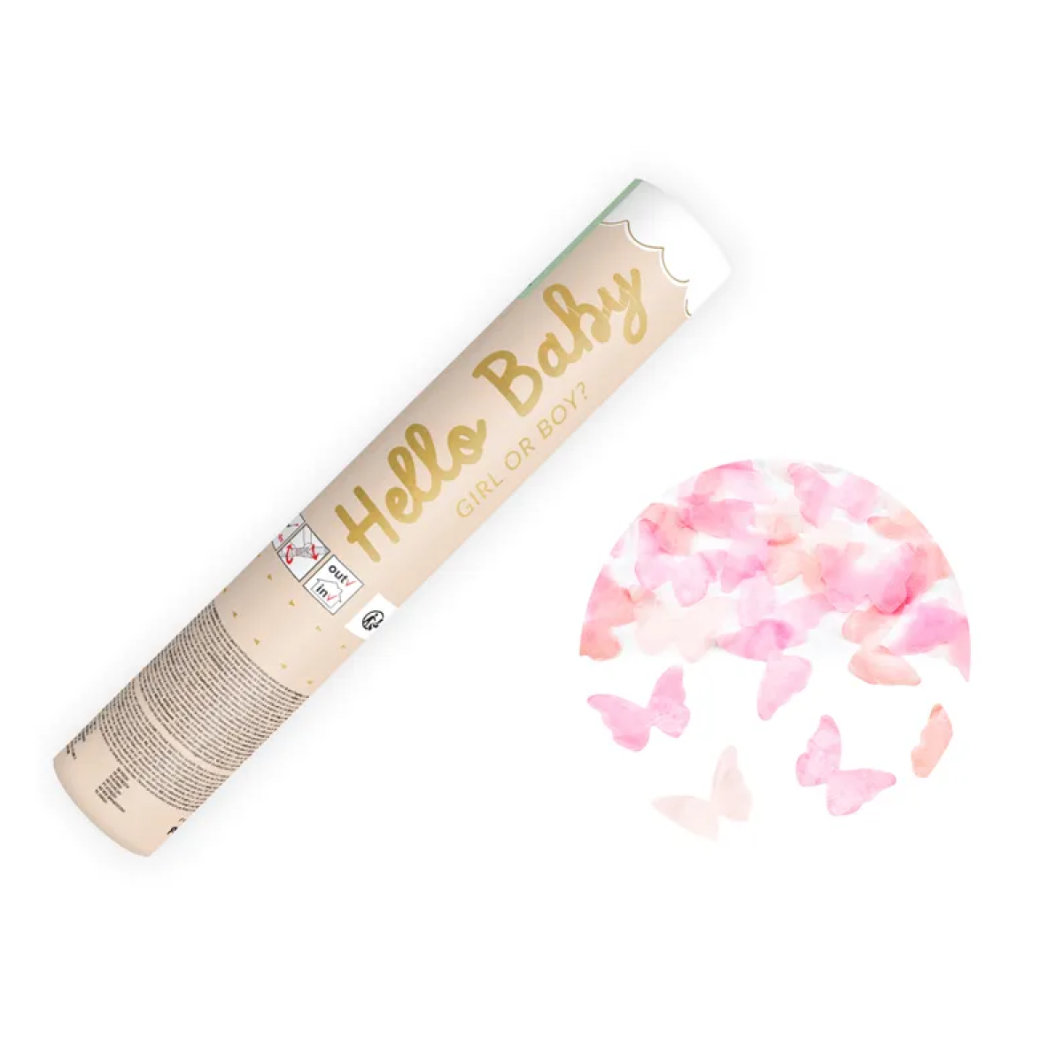 Kaunis konfetikahur, mis laseb välja paberist liblikaid kolmes erinevas roosas toonis. Toru pikkus on 20 cm. Töötab suruõhuga, mitte ilutulestikuna. Laskekaugus 5–8 meetrit.