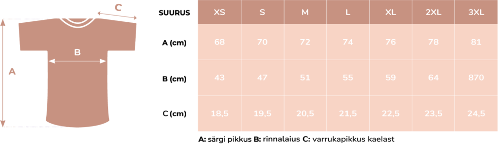 Tooteinfo: UNISEX tüüpi t-särk