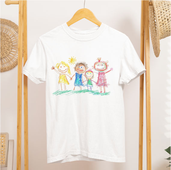 See unisex t-särk on loodud selleks, et muuta lapse joonistus ainulaadseks ja südamlikuks mälestuseks, mida saab kanda iga päev. Iga t-särk on täiesti personaalne, sest trükime sellele just sinu lapse loodud pildi või joonistuse.