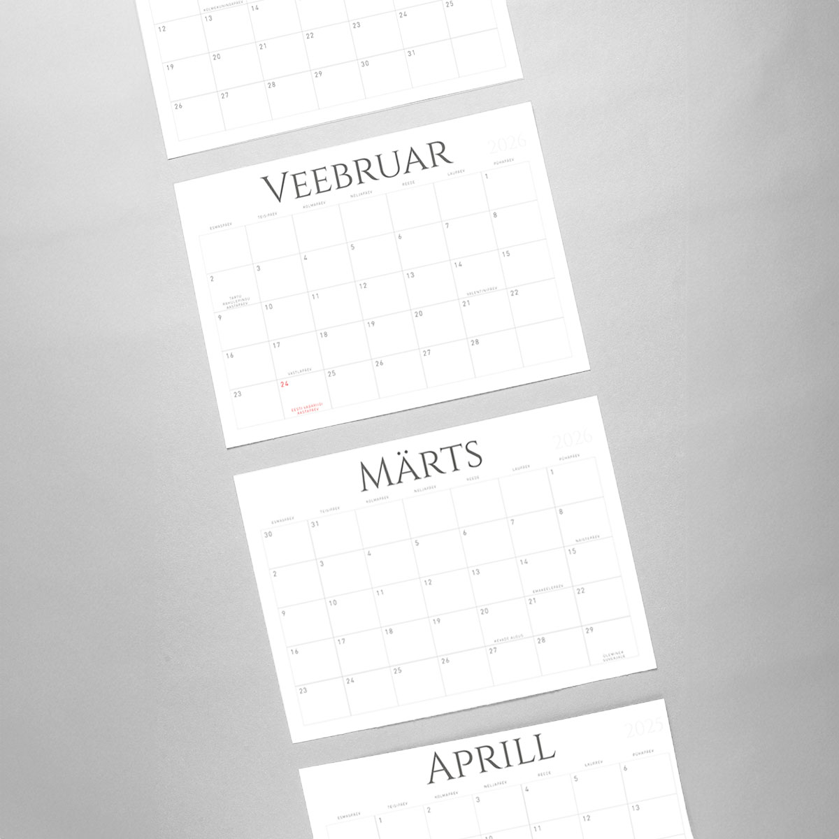 - Kvaliteetne trükk ja materjal: kalender on trükitud vastupidavale paberile, mis talub igapäevast kasutamist. Ilusad ja selged kujundused teevad plaanide jälgimise lihtsaks ja nauditavaks.