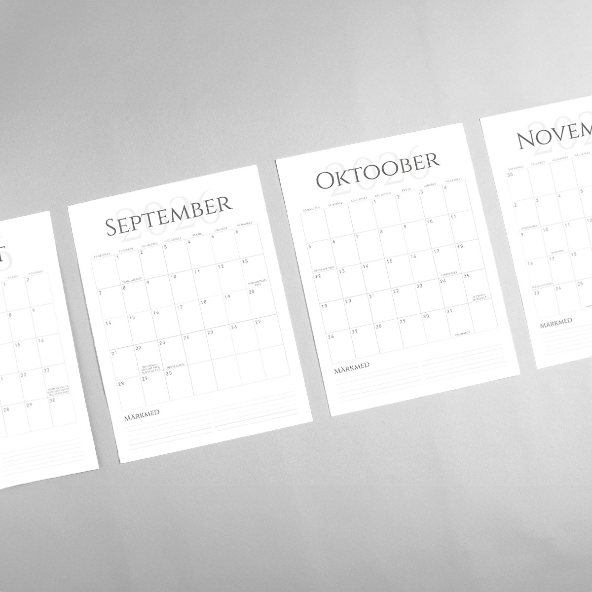 - Kuude kaupa jaotatud lehed: iga kuu on eraldi lehtel, mis võimaldab teil mugavalt vaadata ja planeerida kuuüleseid tegevusi. Kalender on ideaalne peredele, kes soovivad jälgida iga pereliikme ajakava – alates koolitundidest ja trennidest kuni arstiaegade ja perekondlike üritusteni.