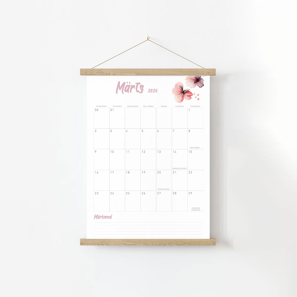 - Puidust riputusliist: Soovi korral saate tellida kauni ja stiilse puidust riputusliistu, mis lihtsustab kalendri ülesriputamist ja lisab teie kodule hubasust. Liistud on kergesti paigaldatavad.