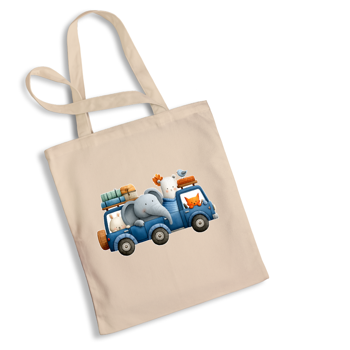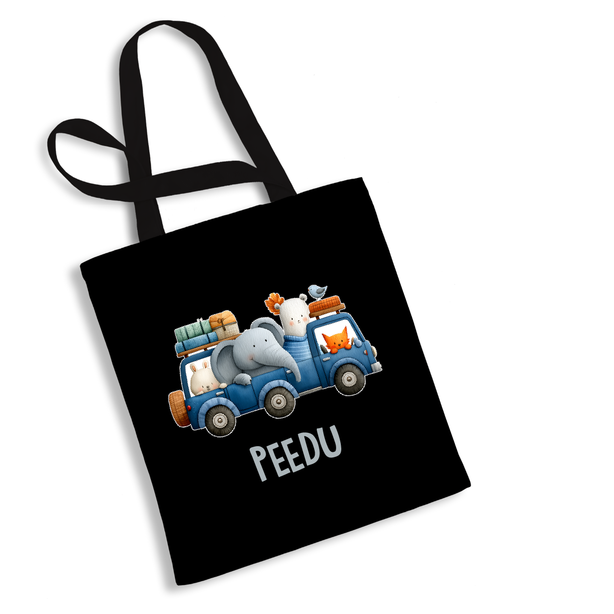 Armas ja tugev riidest kott laste vahetusriiete või mänguasjade jaoks. Valmistatud 100% orgaanilisest puuvillast, pikkade sangadega. Kaunistatud rõõmsate loomade või liblikatega – saad lisada ka lapse nime!