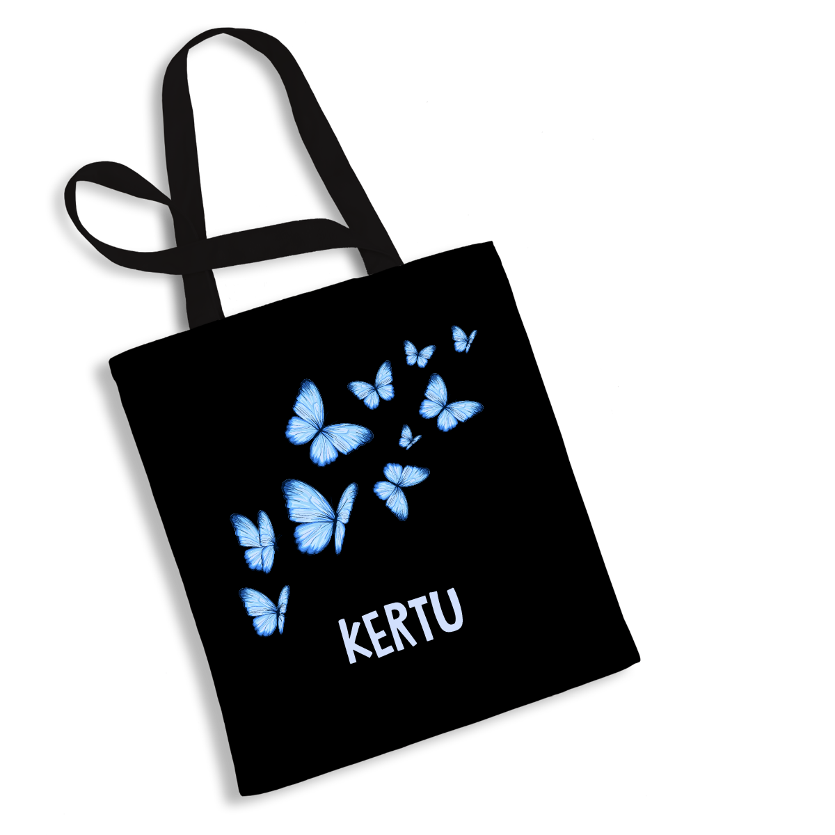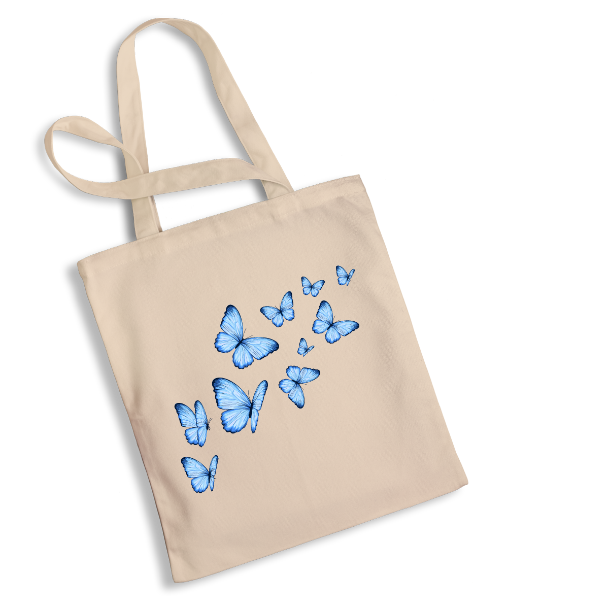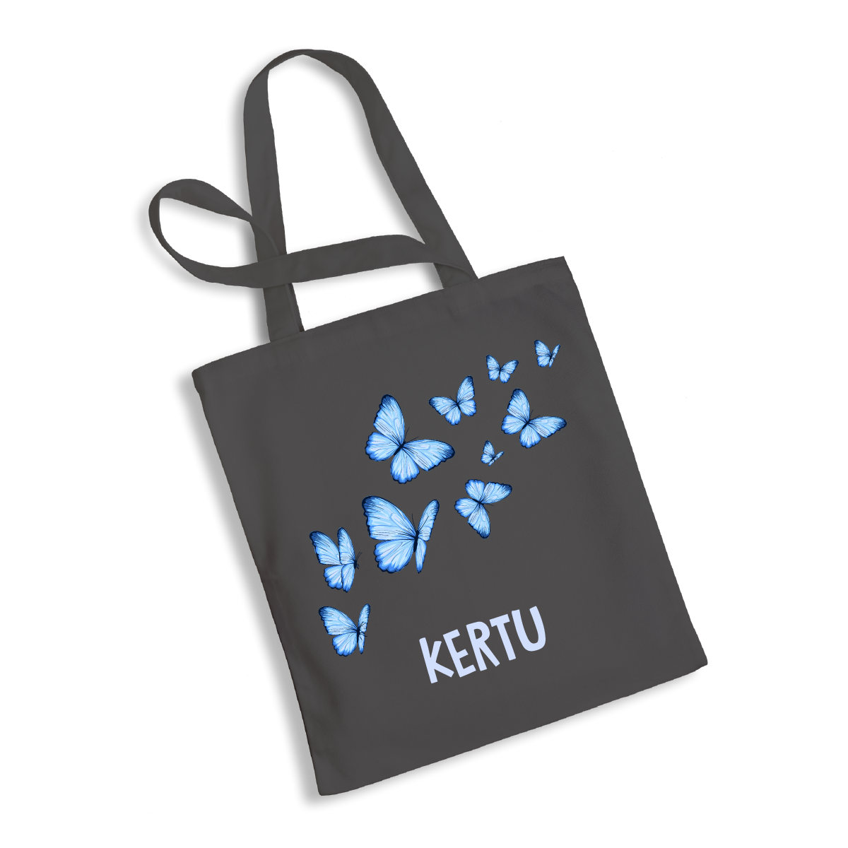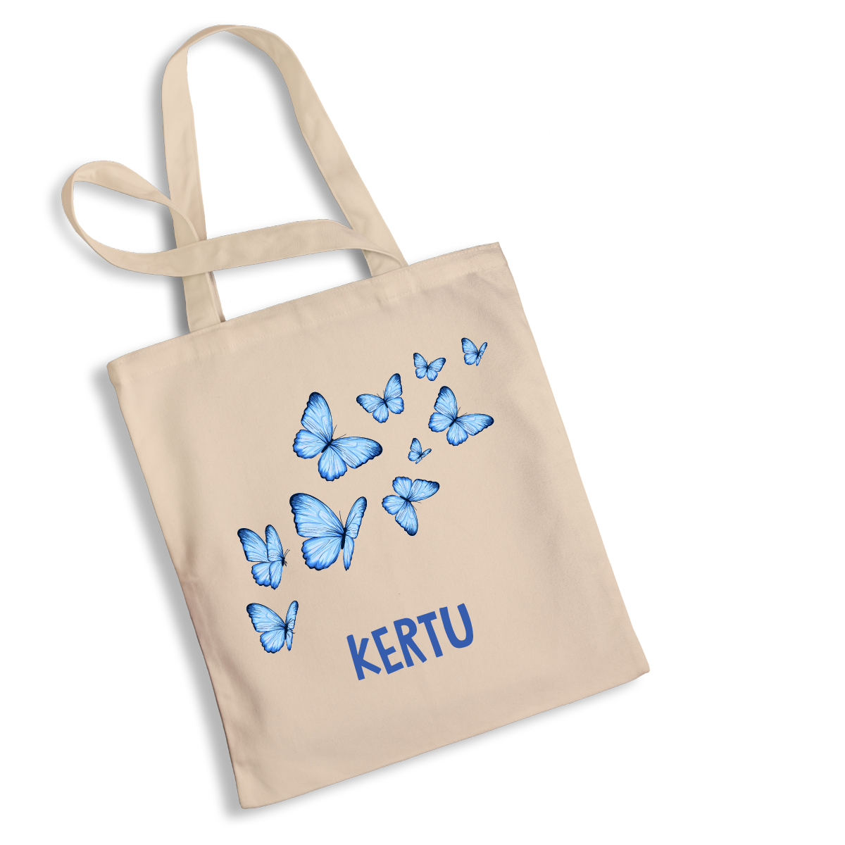 Armas ja tugev riidest kott laste vahetusriiete või mänguasjade jaoks. Valmistatud 100% orgaanilisest puuvillast, pikkade sangadega. Kaunistatud rõõmsate loomade või liblikatega – saad lisada ka lapse nime!