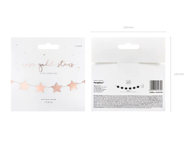 Roosa-kuldsete tähekujuliste elementidega vanik. Kaunistus beebipeole, sünnipäevale või mõnele teisele pidulikule sündmusele, mis lisab ruumile sära ja elegantsi.